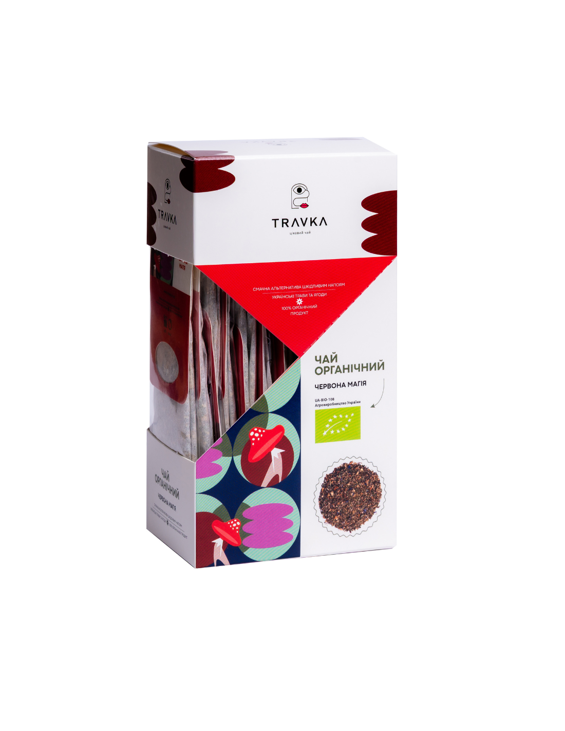 Taste: An unconventional combination of well-chosen herbs, fruits and mushrooms gives an interesting and unique taste. This is a pleasant herbal tea with floral notes. A special emphasis is placed on fly agaric, which adds an earthy, deep note to the flavor, making the tea blend more complex and interesting.
